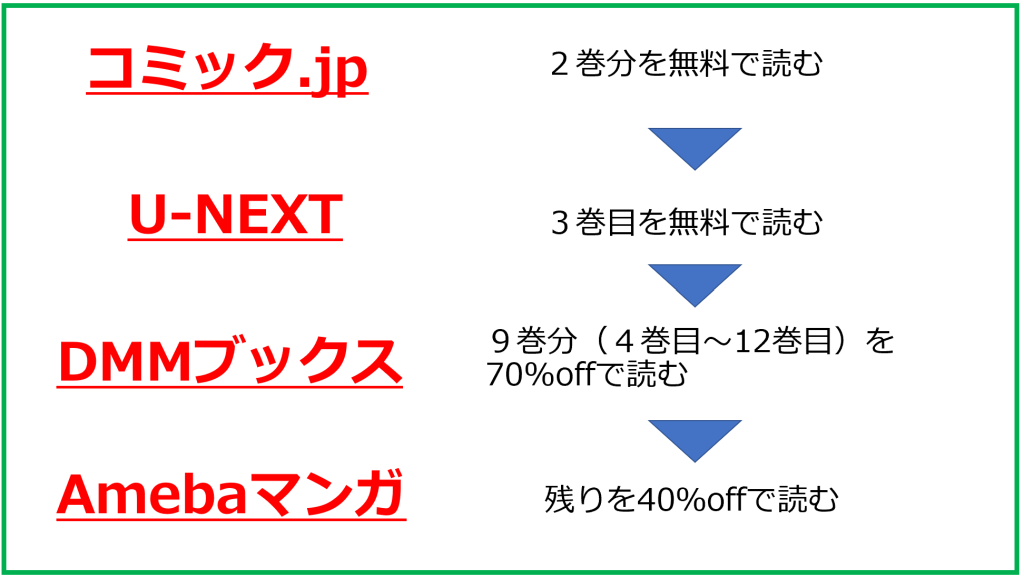 ②U-NEXT:かかる値段0円(3巻目まで読む)